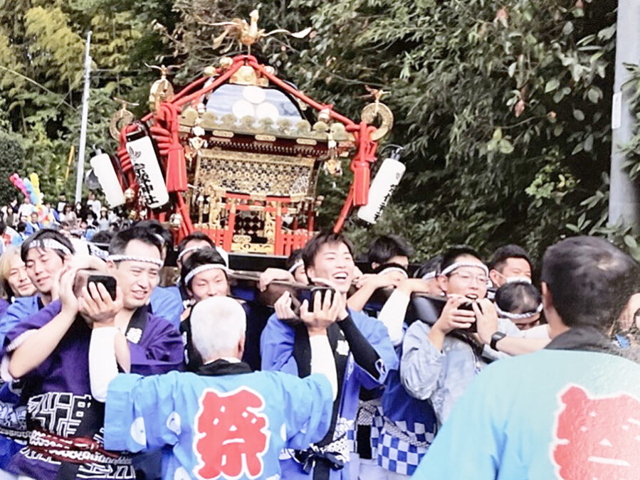 今年は三年に一度の「例大祭」と呼ばれる秋まつりが10月12日に開催されます。前回3年前はコロナ禍の影響で中止となり、6年振りの開催となります。お神輿は師戸の願船漆工房主宰、大西長利先生が平成10年から約10年かけて垂木一本一本外し、漆を塗って組み直し修復されたものです。ご神体を乗せたお神輿は、人々に担がれて高台にある神社を出発、印旛沼の近くまで降りていきます(お浜下り)。師戸地区「奈良戸」「西台」「岡台」と